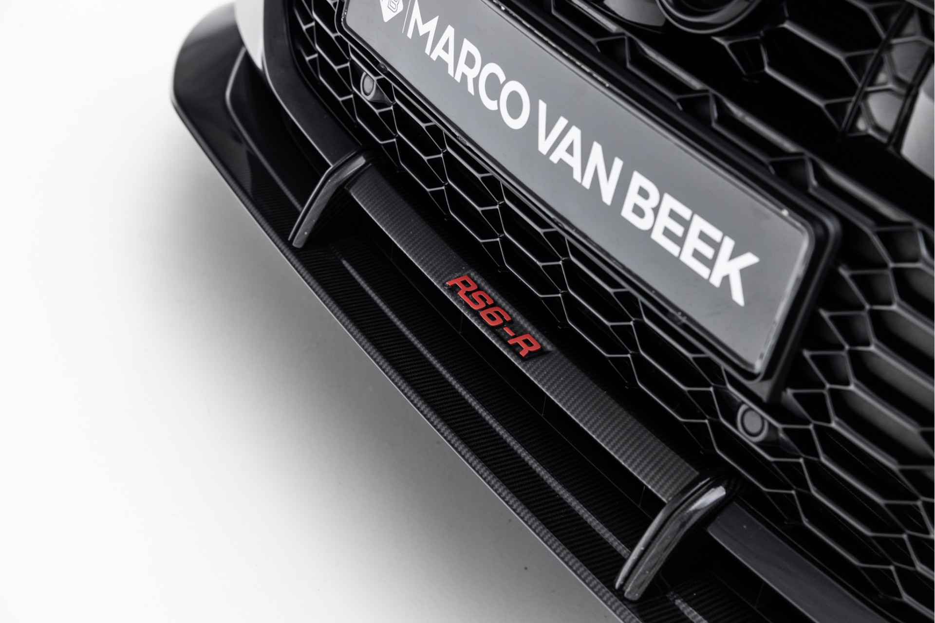 - ABT Frontgrill add-on en ABT frontspoiler add-on (carbon hoogglans) met rood RS6-R logo