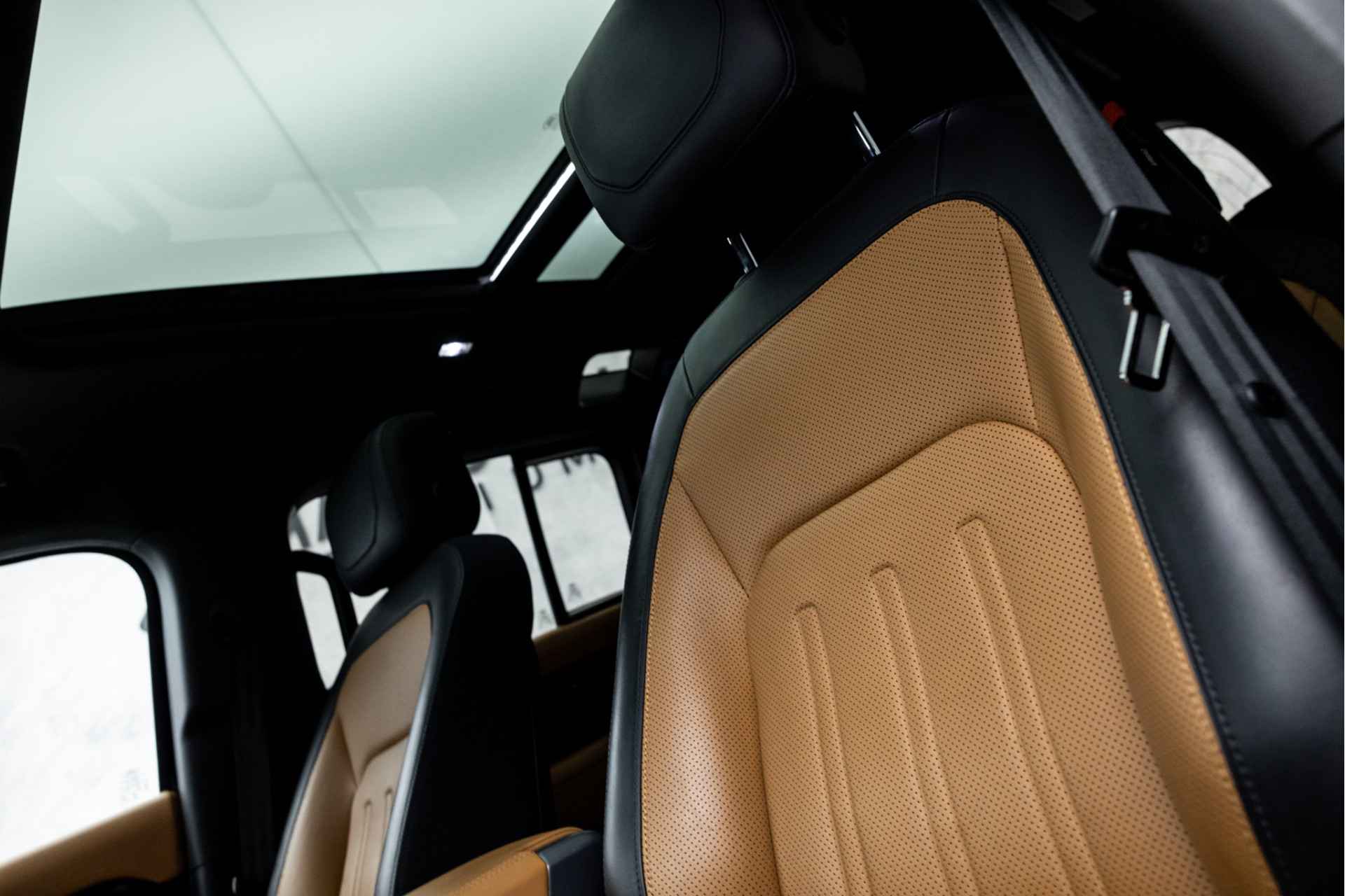 Prachtig exemplaar in de uitgebreide 'X' uitvoering, waardoor deze Defender zeer compleet is uitgevoerd. Geventileerde voorstoelen en achterstoelen, groot glazen panoramadak met schuif-/kantelfunctie, elektrisch wegklapbare trekhaak, camera in de binnenspiegel, stoelverwarming op alle zeven zitplaatsen en ga zo maar door!